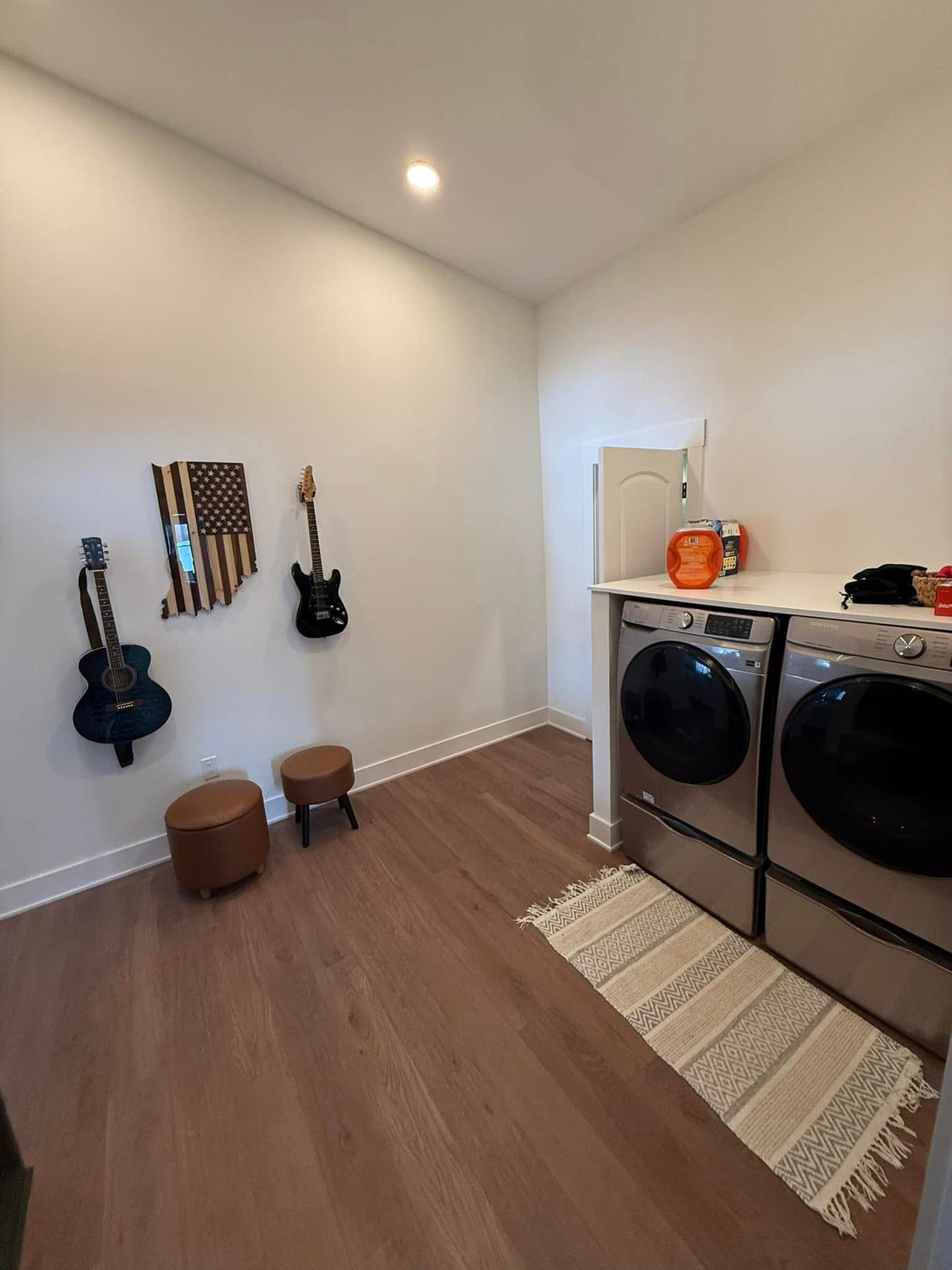 This project features our conversion of an oversized garage into 500 square feet of livable space, including a bathroom, home office, laundry room, and rec room.